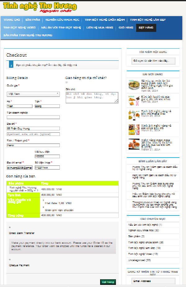 Tinh bột nghệ Thu Hương kính chào quý khách.