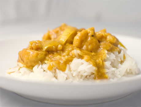 Món cà ri gà ăn nóng với bánh mỳ hoặc cơm trắng.